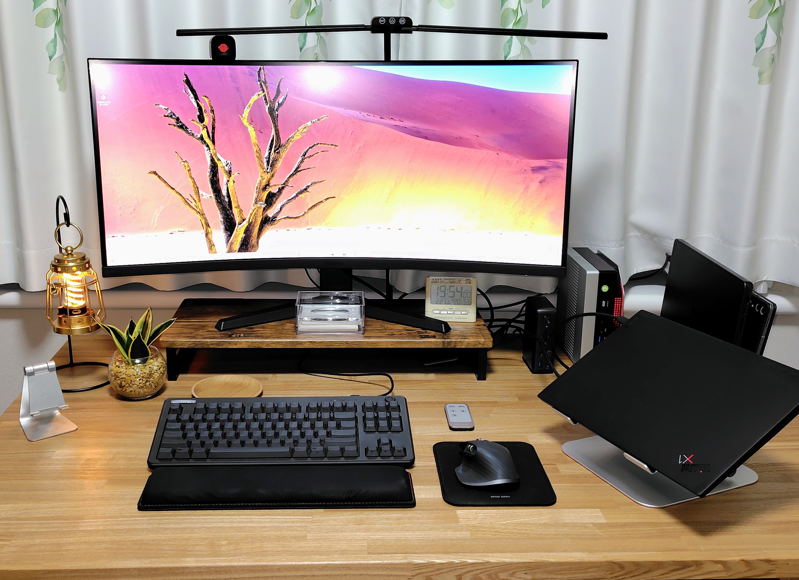 - 無垢材デスクの上にのせるとさすがにチープな趣があるがギリギリセーフとしている